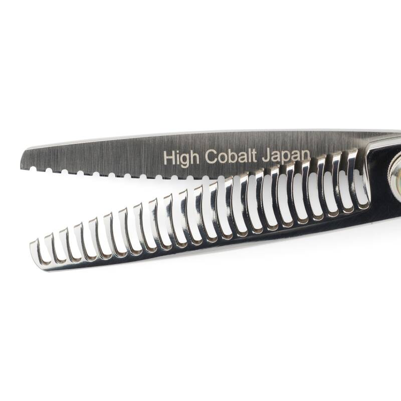 Der Haircrane Master REFINE 6.0 Zoll besteht aus japanischem Stahl mit High Cobalt. Die Zähne sind unten und die obere Klinge ist ganz speziell gezahnt. Die REFINE ist eine weiche Coupé-Schere, die speziell entwickelt wurde, um ganz besonders mischen zu können und das Haar weicher zu machen. Sie können diese Schere für ein sanftes Verblenden ganz gerade/waagerecht in das Haar einführen. Dieser Haircrane Master REFINE hat 22 oder 25 patentierte Zähne auf der unteren Klinge und die obere Klinge ist gezahnt. Ideal für alle Arten von Frisuren, die Möglichkeiten sind endlos.