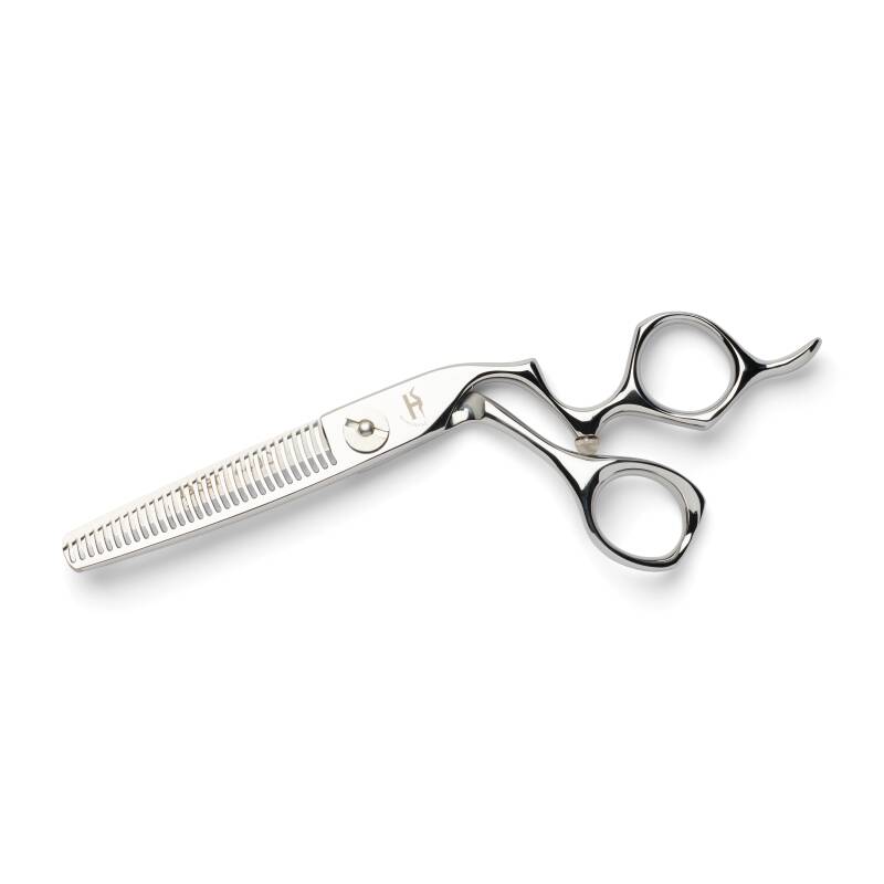 The Haircrane Original VOLUME effilates in a soft way and at the same time you glide through the hair. In thick hair, these coupe scissors will remove enough hair and make lines softer. Very suitable for short haircuts and men's haircuts.